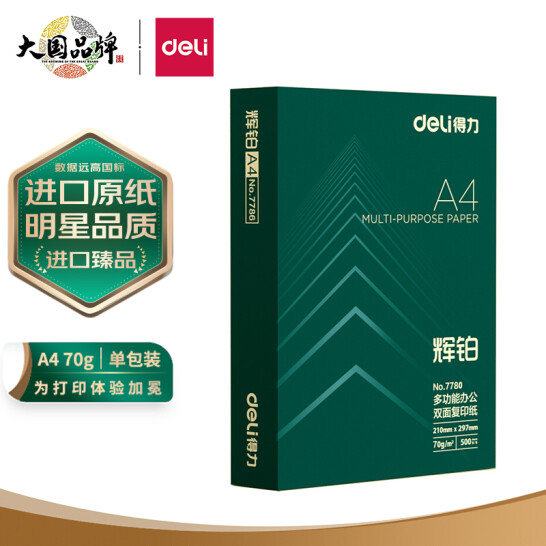 得力(deli)辉铂 A4 70g 双面打印纸 进口原纸复印...