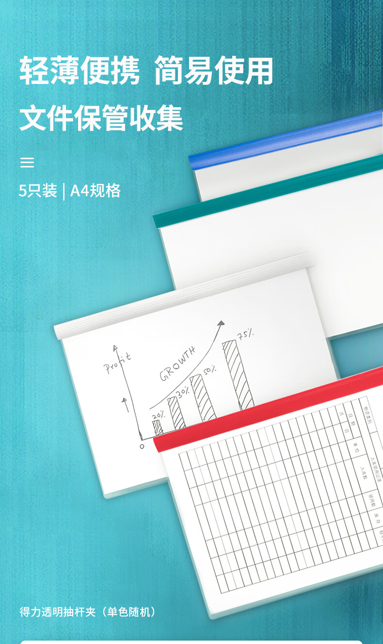 得力(deli)5只/包A4彩色抽杆夹文件夹拉杆夹 学生考试...