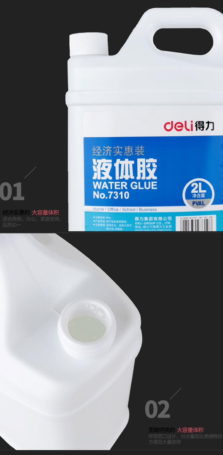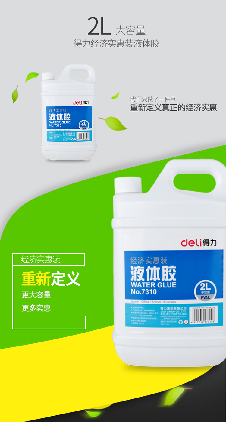 得力(deli)液体胶水2L大桶装可做史莱姆晶泥办公胶水粘性...