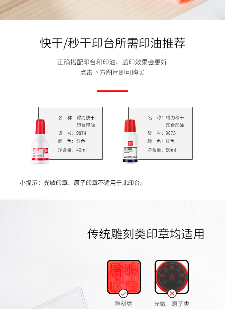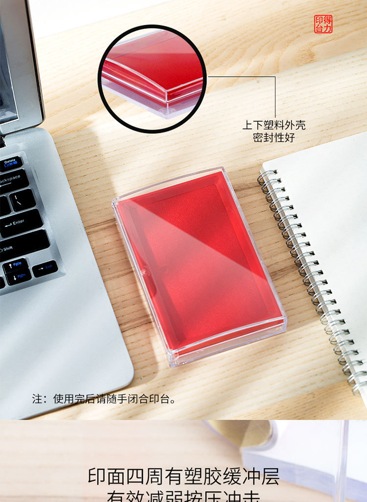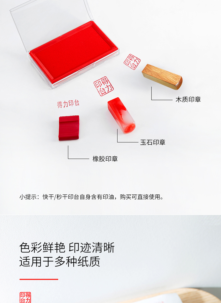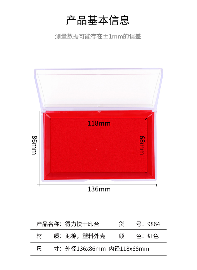 得力(deli)137*88mm透明外壳方形快干印台印泥 办...