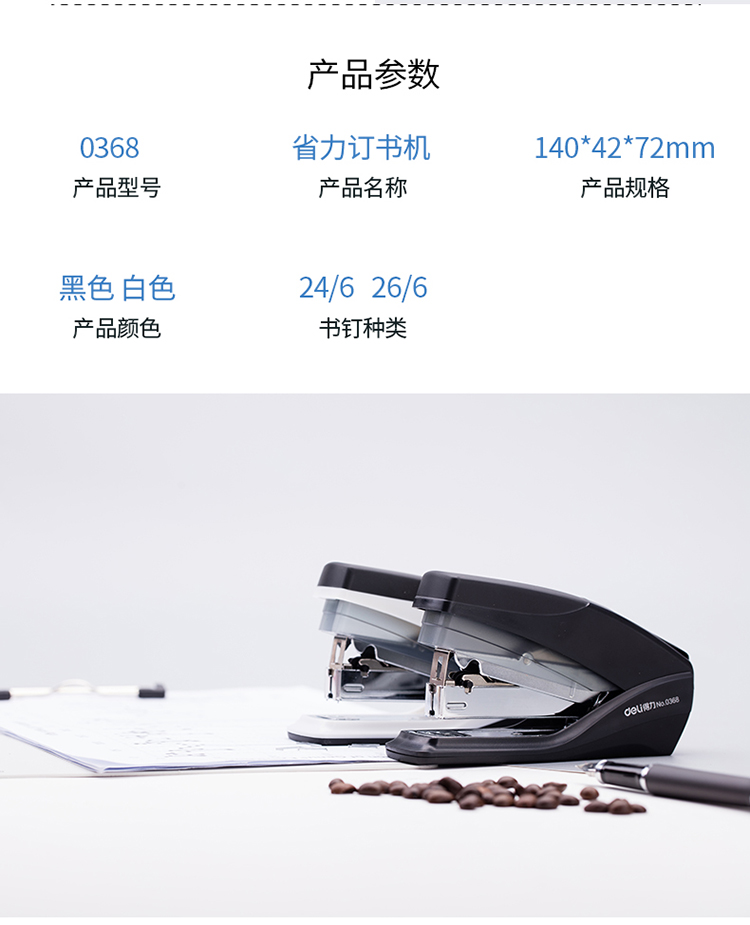 得力(deli)0368订书机省力型订书机适用24/6及26...