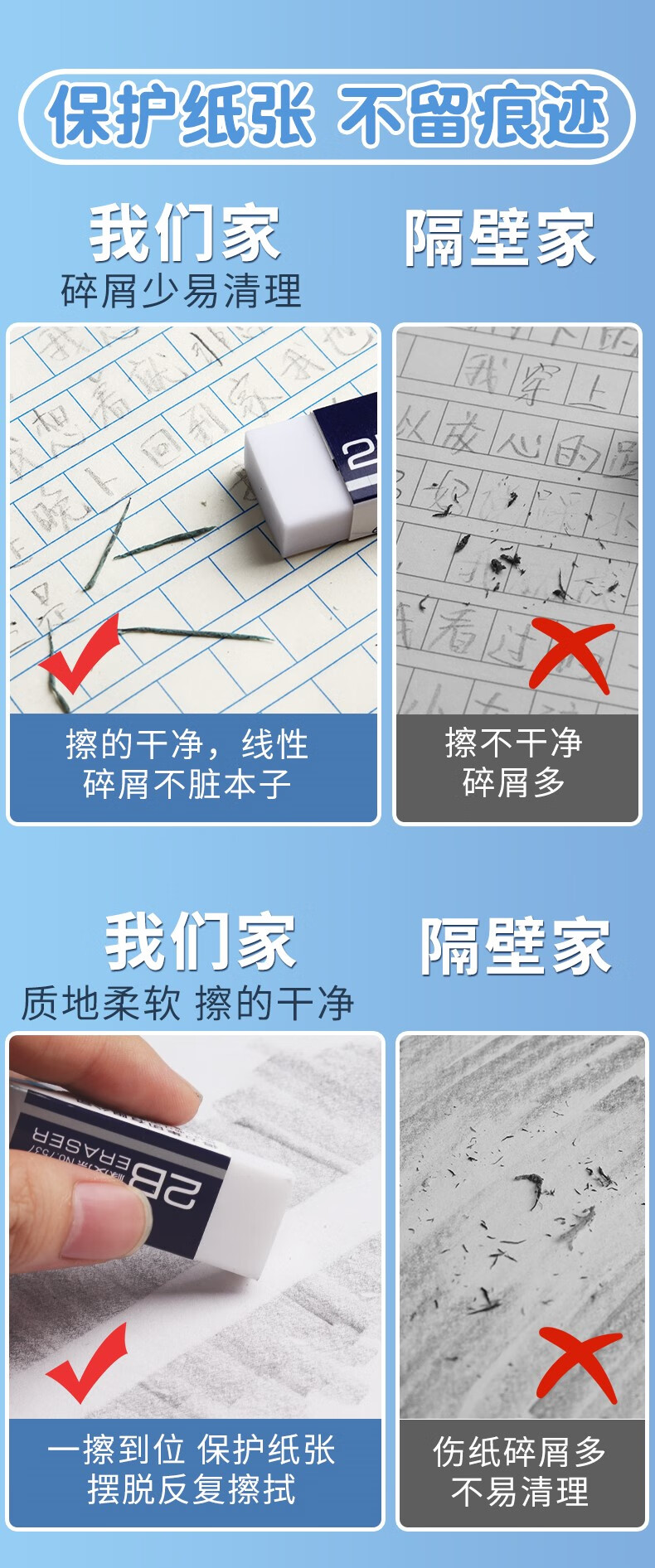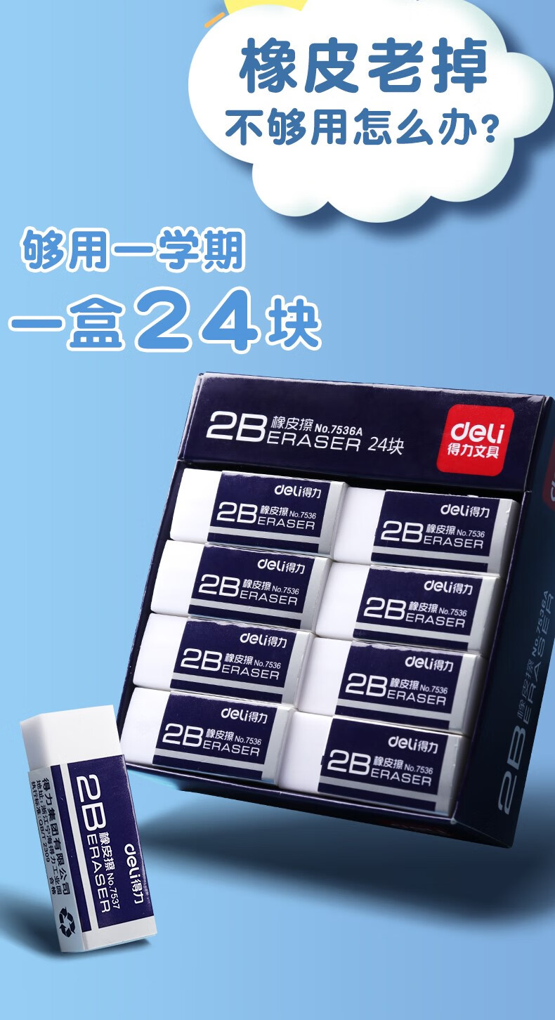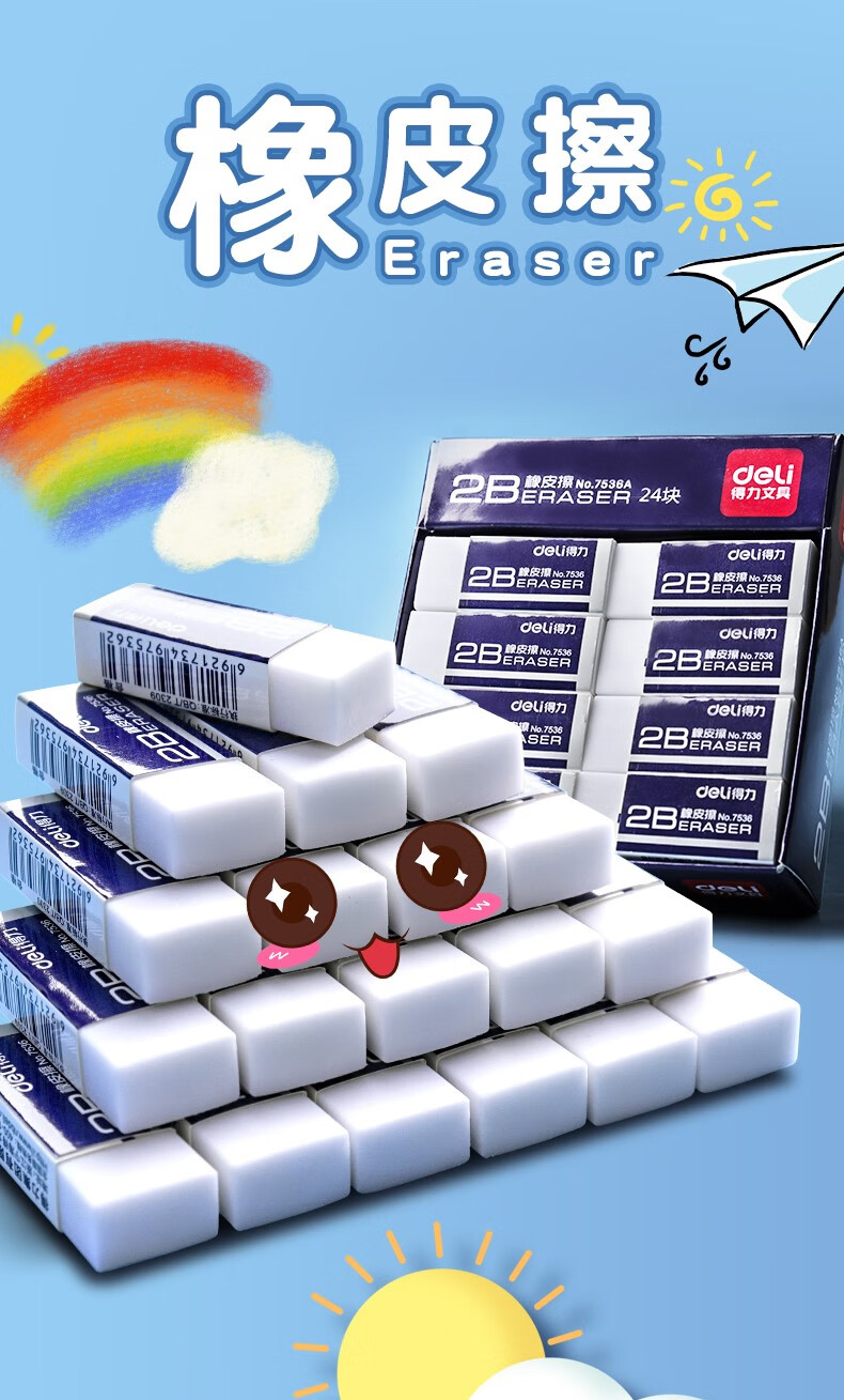 得力无屑橡皮2b可爱卡通4b考试文具学习用品少屑橡皮套装批发...