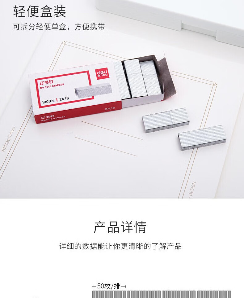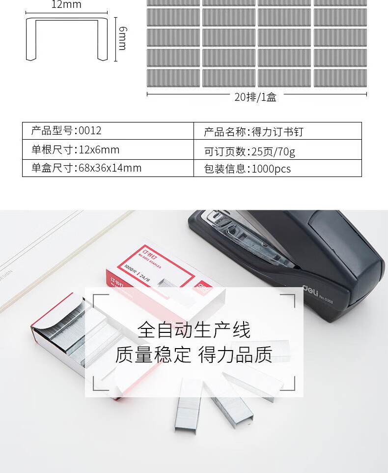 得力(deli)0012 订书针12号统一常用订书针24/6...