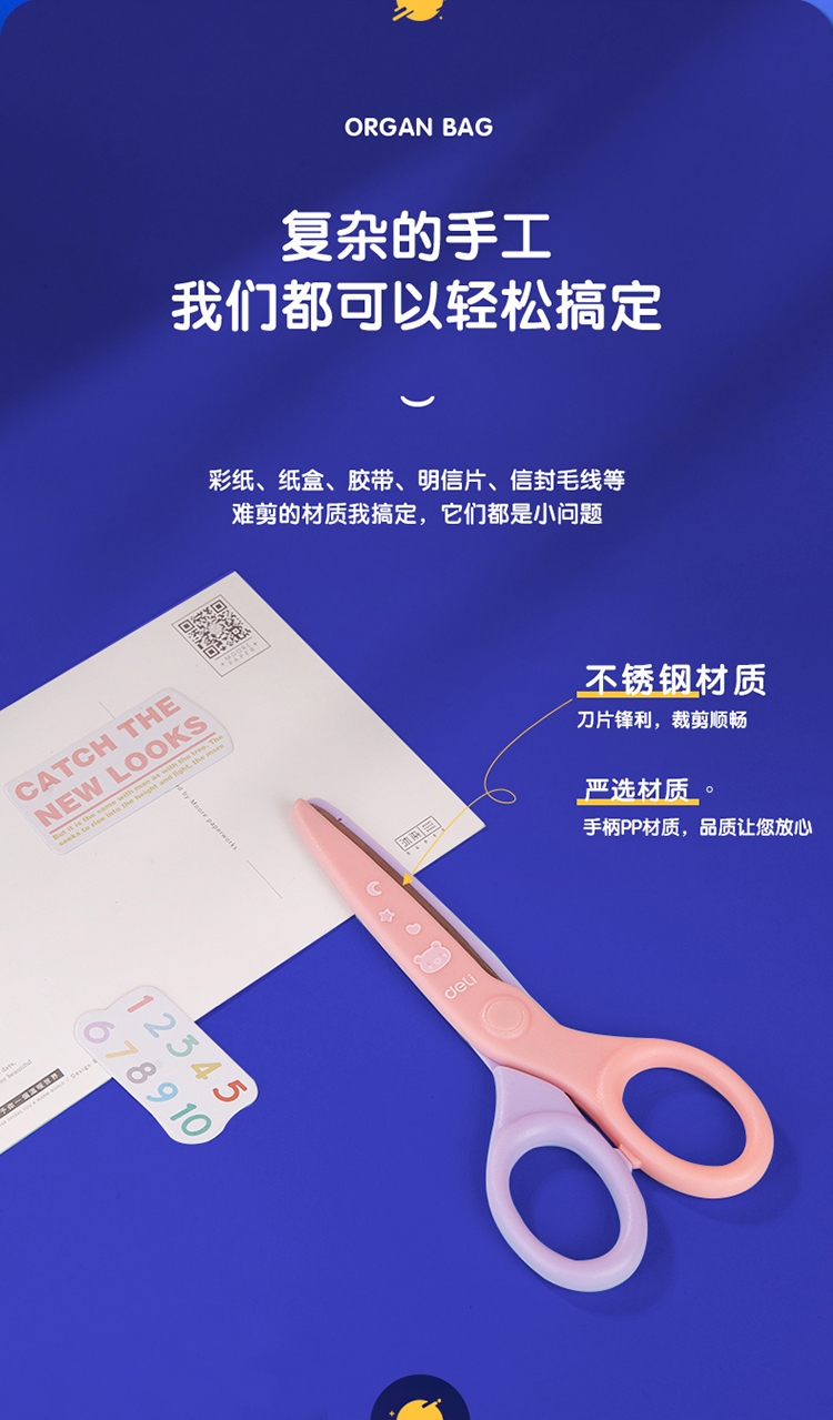 得力(deli)学生手工剪刀 美术手工课DIY剪刀 颜色随机...