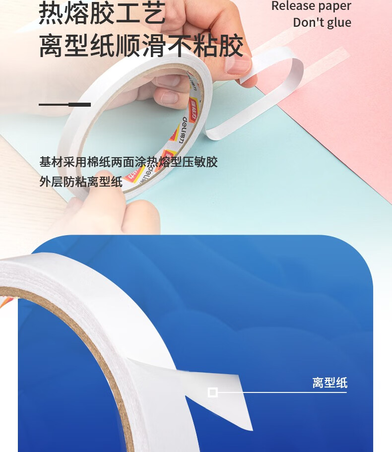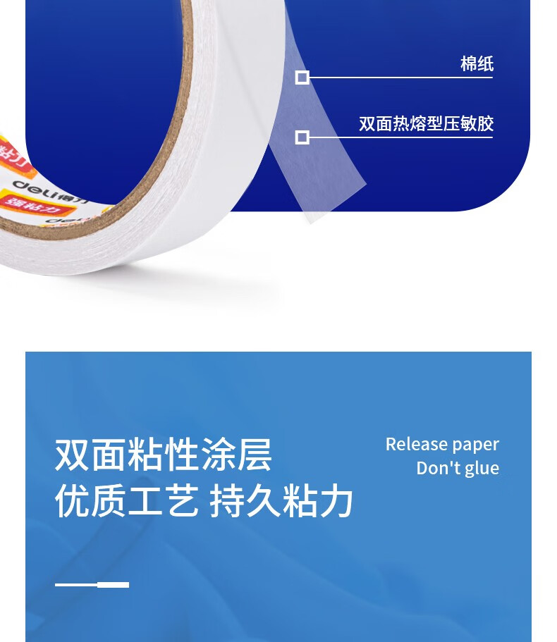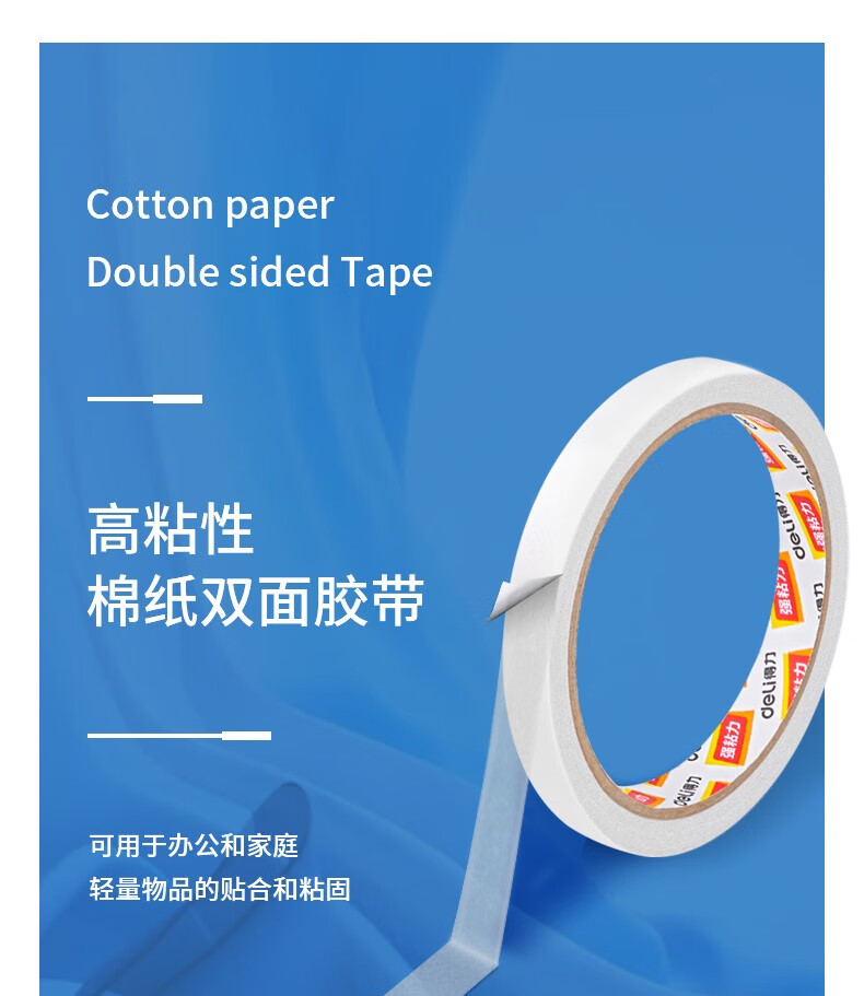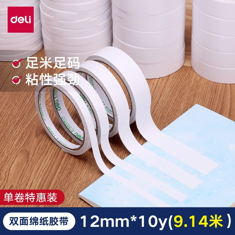 得力(deli)高粘性双面胶带 加粘双面胶 双面棉纸胶带/双...