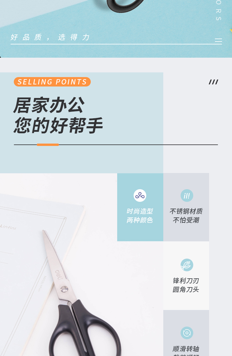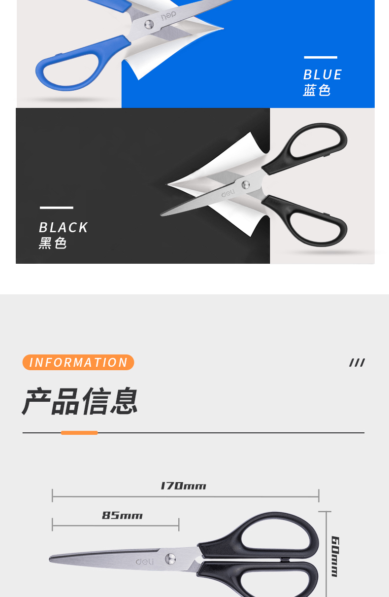 得力(deli)170mm办公家用生活剪刀 1把 办公用品 ...