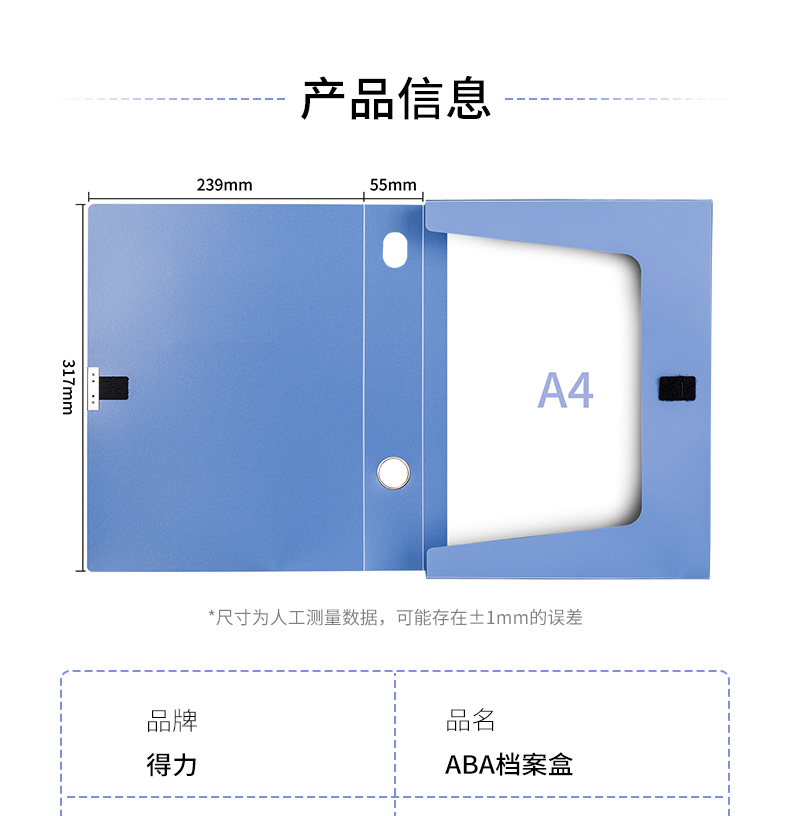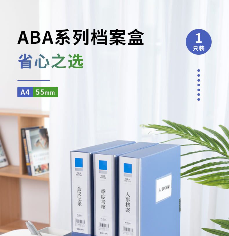 得力(deli)1只55mmA4塑料文件盒档案盒 加厚资料盒...
