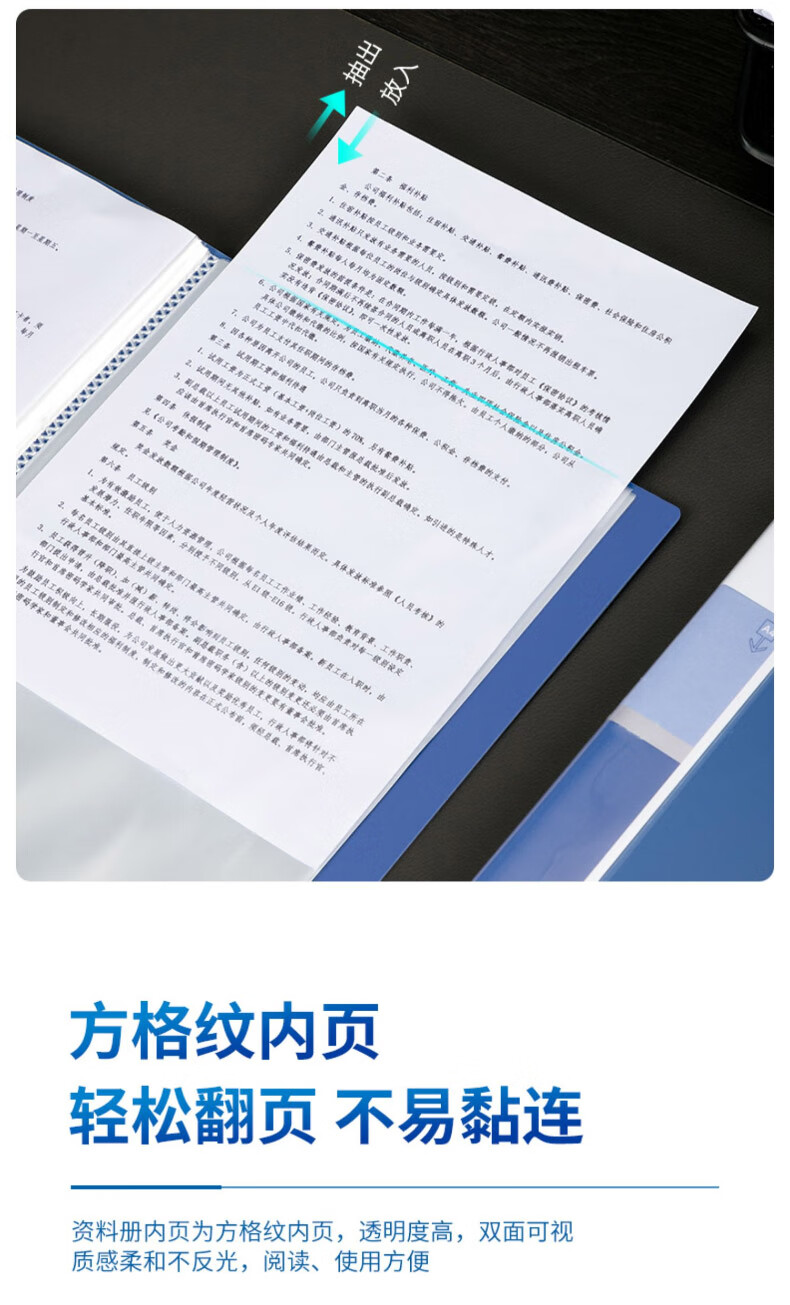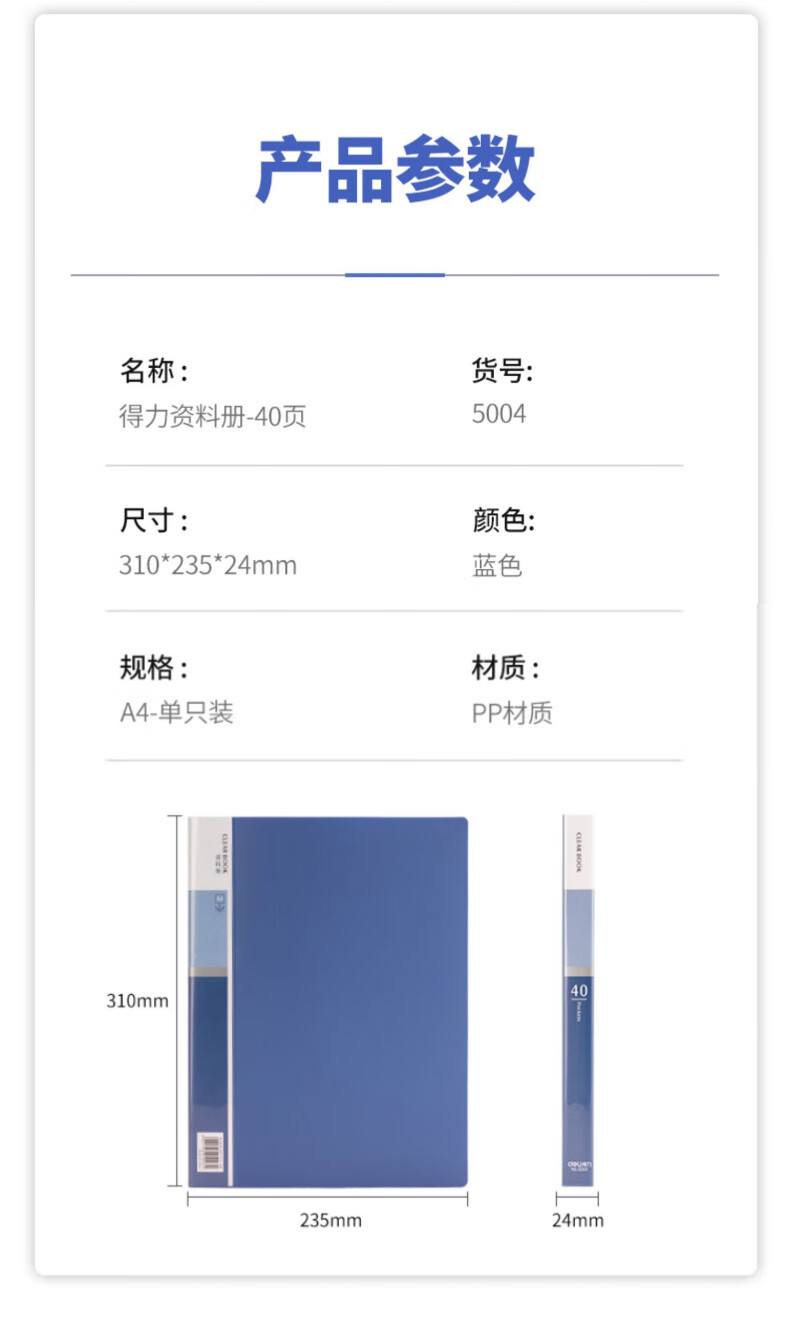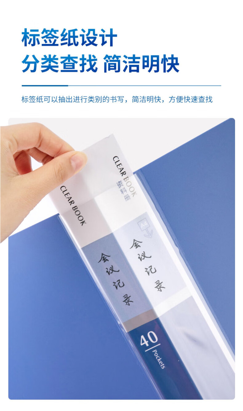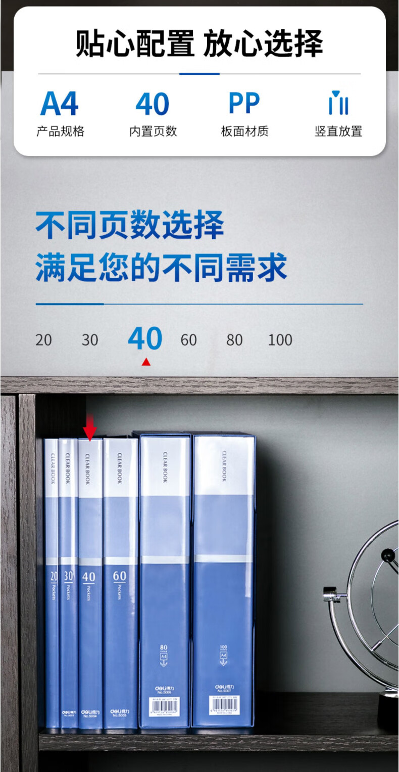 得力(deli)A4/60页资料册文件活页收纳册插袋档案文件...