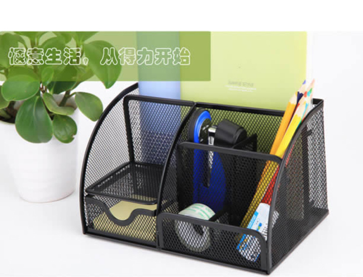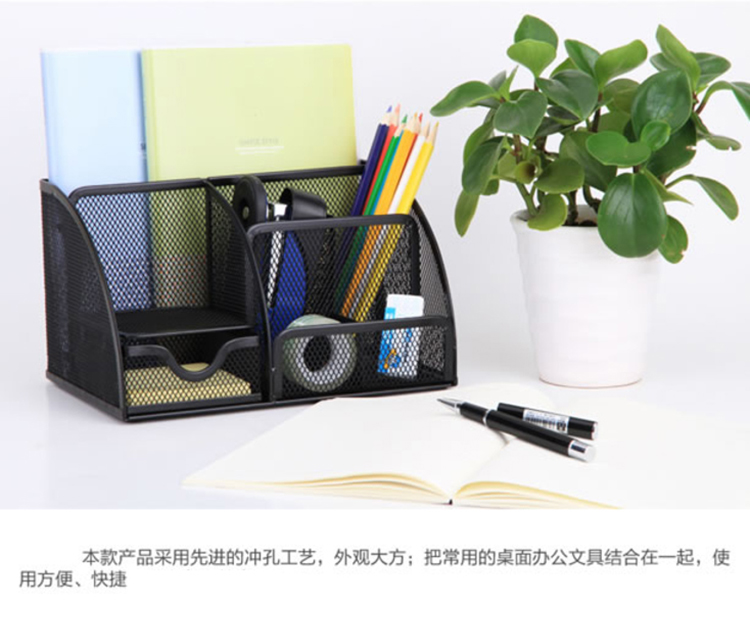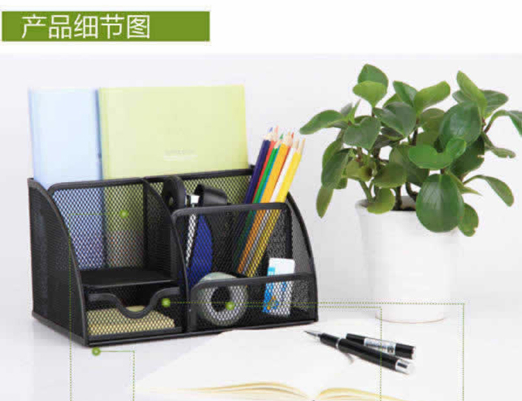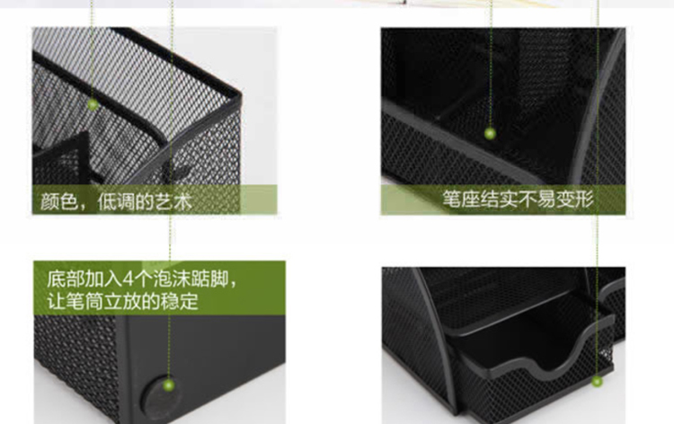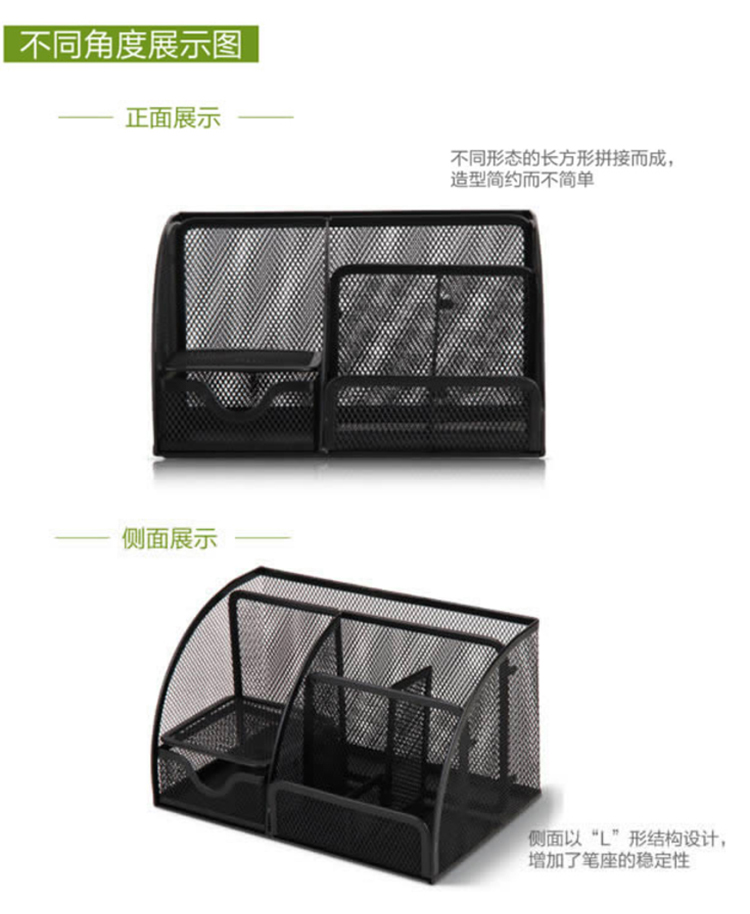 得力(deli)创意金属网纹办公笔筒 多功能七格桌面收纳摆件...