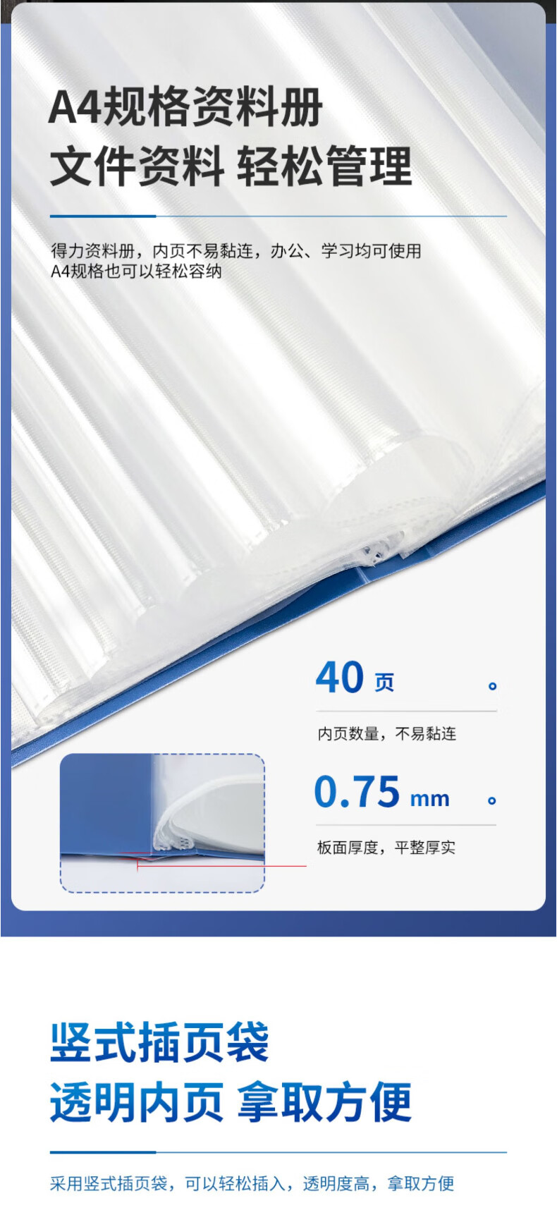 得力(deli)A4资料册透明活页试卷夹文件夹插页袋20/3...