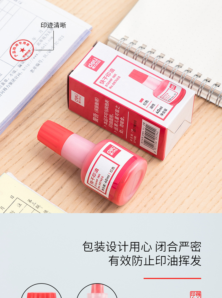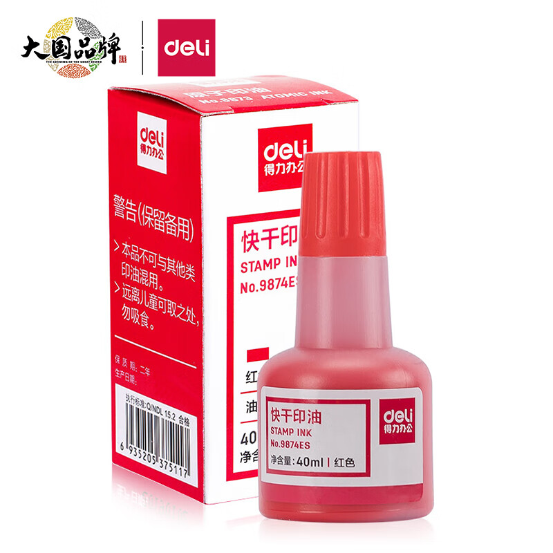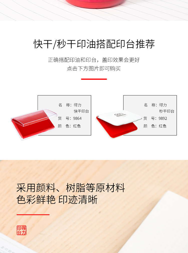 得力(deli)40ml财务印章快干清洁印油印泥 财务用品 ...