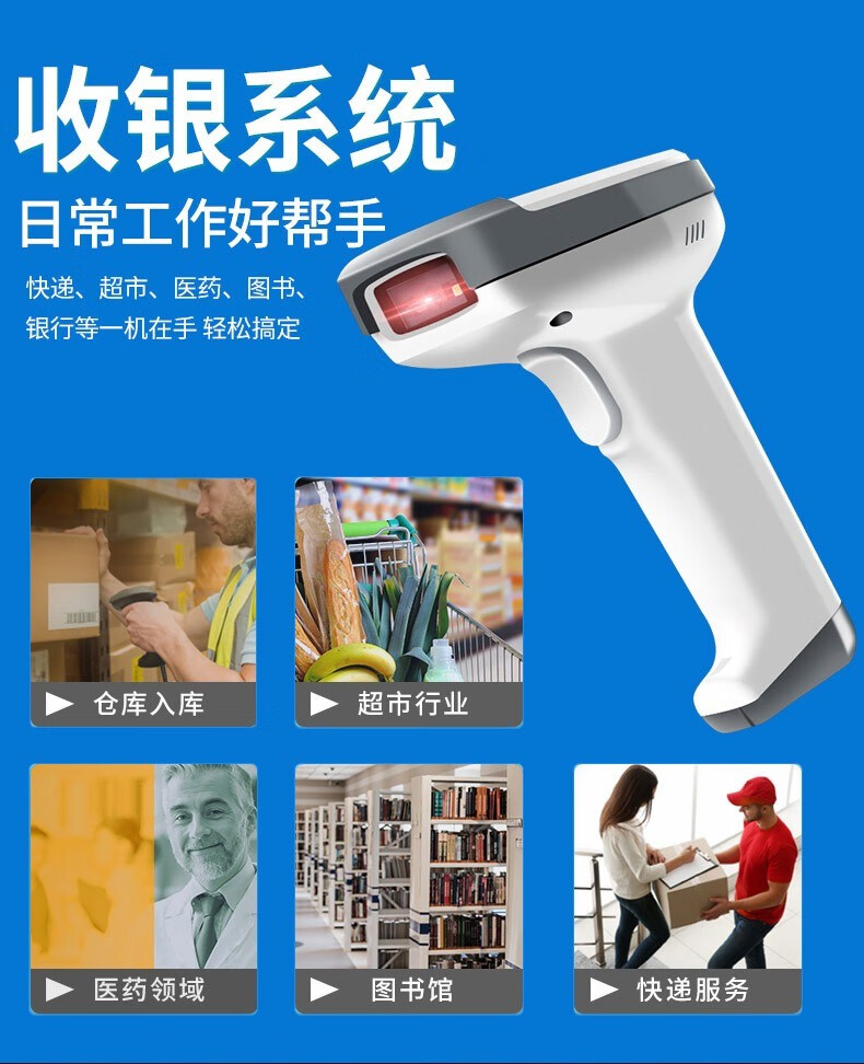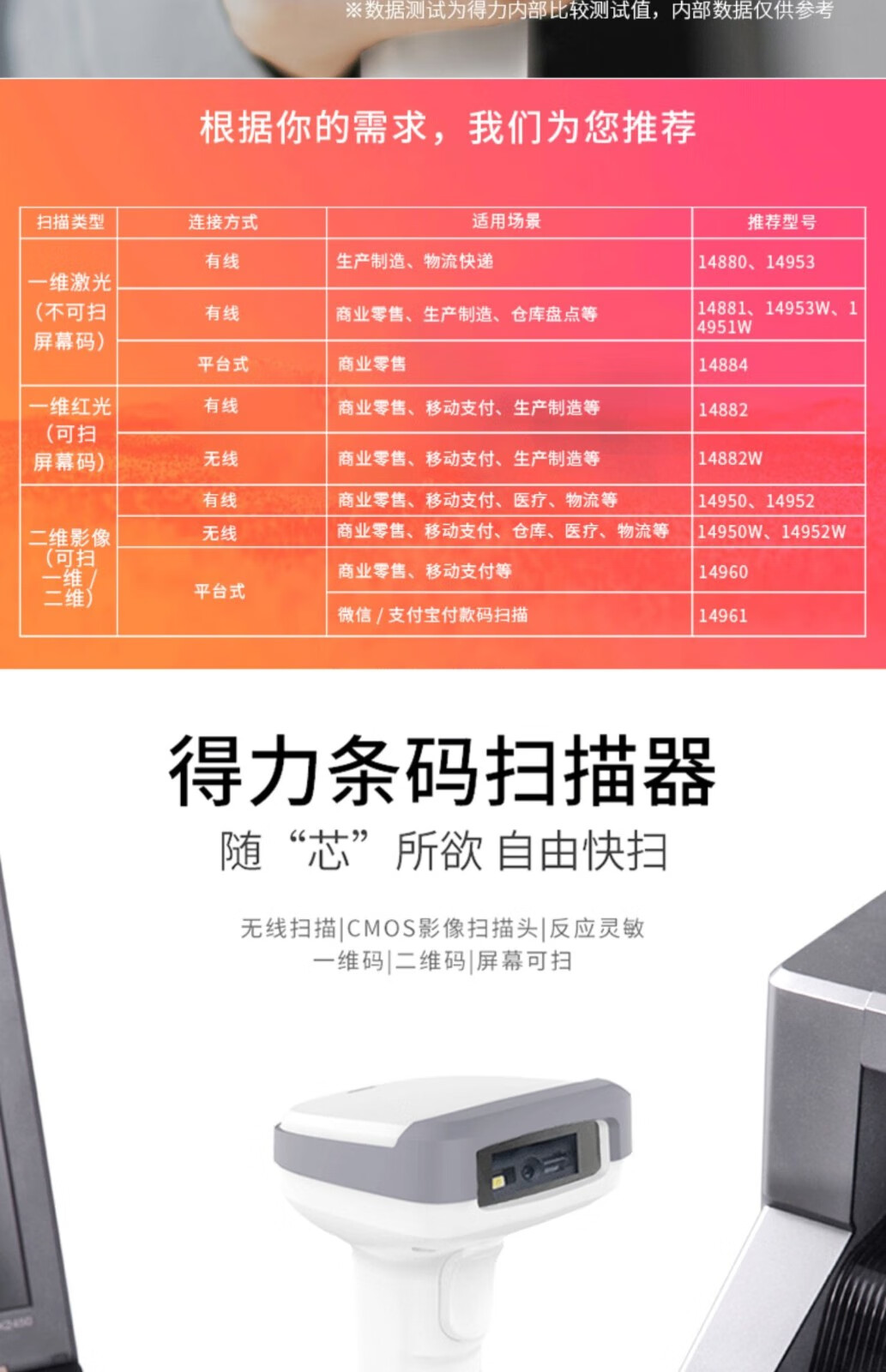 得力(deli)条码扫码枪一二维码条形码扫码器收款收银微信扫...