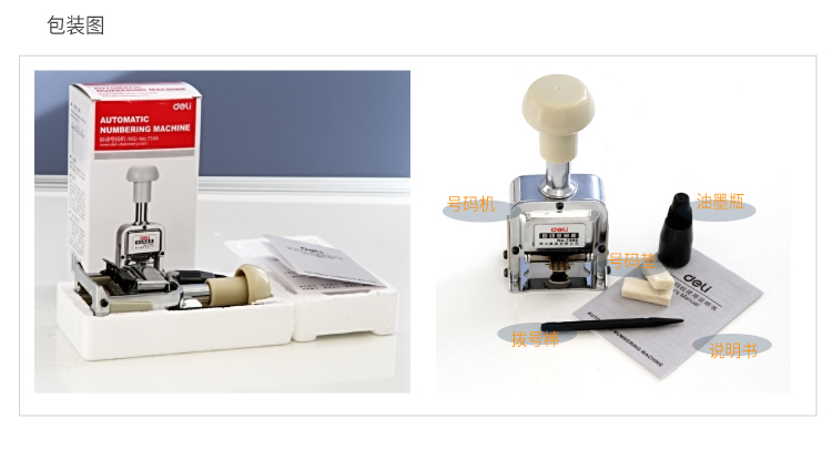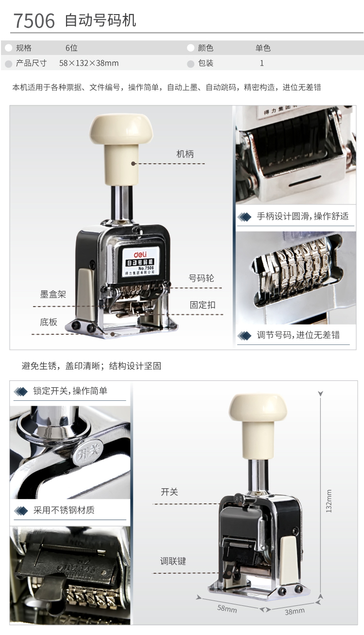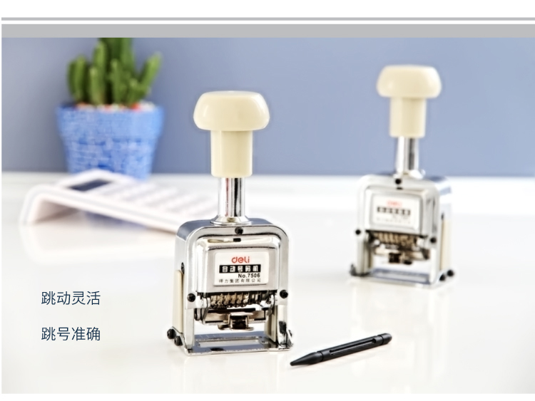得力(deli)6位财务办公自动号码机/打码机 盖印清晰 财...